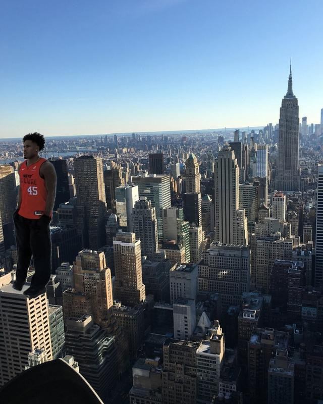 而热火官方恶搞了自家球员一把,把米切尔的人像P到了各个景点,并配文:“下一站去哪?”